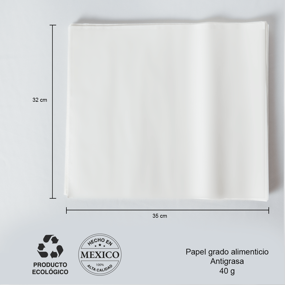 - Papel para envolver alimento grado alimenticio, color blanco. 32 x 35 cm